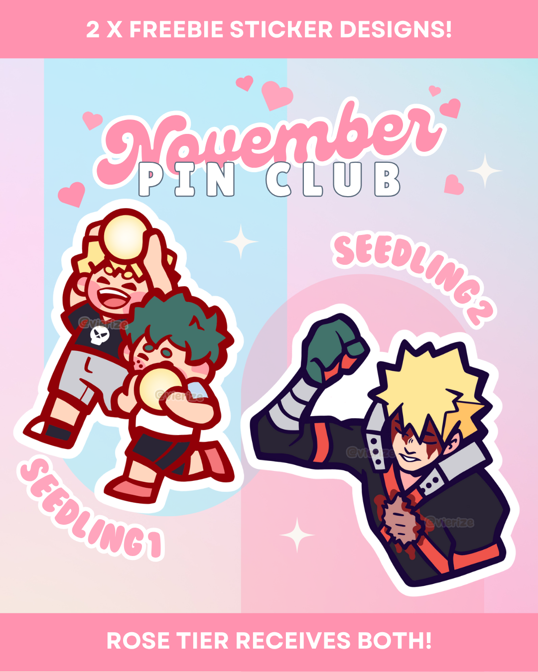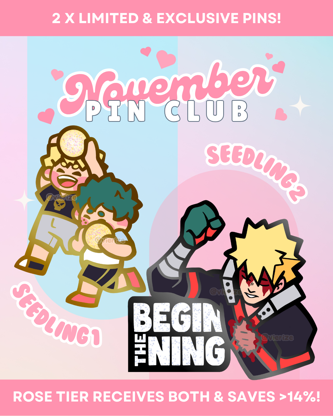 موضوع هذا الشهر هو " البداية ": احتفالاً بالموسم الثامن الجديد من BNHA! احصل على الشخصية المتحولة جنسياً في مستوى الشتلة الأولى، أو الشخصية غير المتحولة جنسياً في مستوى الشتلة الثانية، أو كليهما (واحصل على خصم يزيد عن ١٤٪ في مستوى الوردة!)
