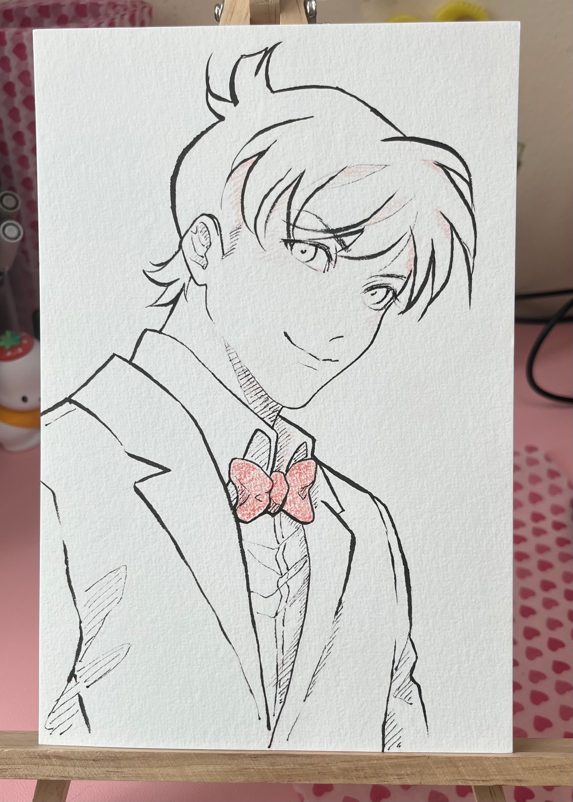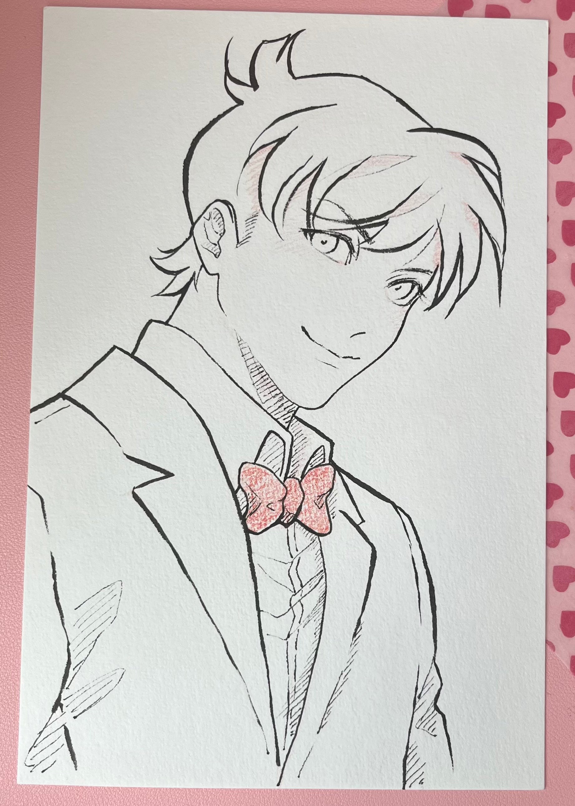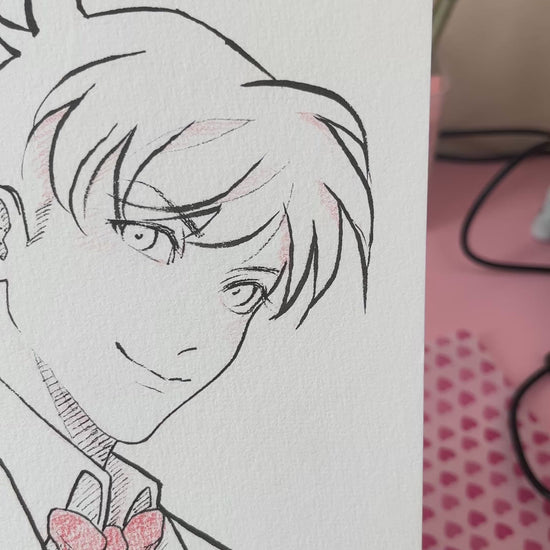 This listing is for a 6 x 9 inch original artwork by Hkdoodles (Hiba)!! Featuring shinichi from Case Closed (Detective Conan), it is an ink & colored pencil piece done on 100% cotton 300gsm paper and, If you're the first to snatch this, you will be the owner of a one of a kind piece!