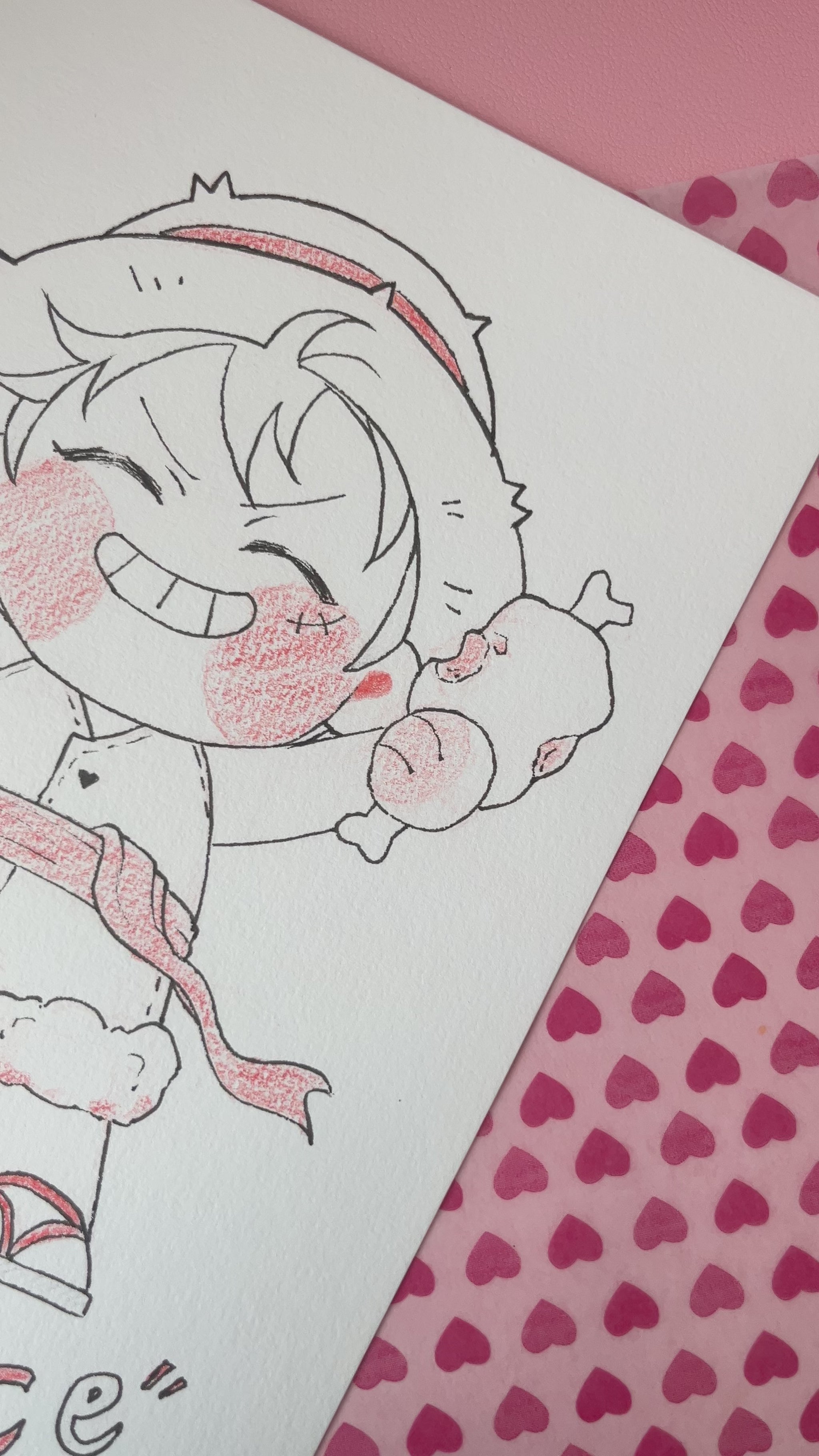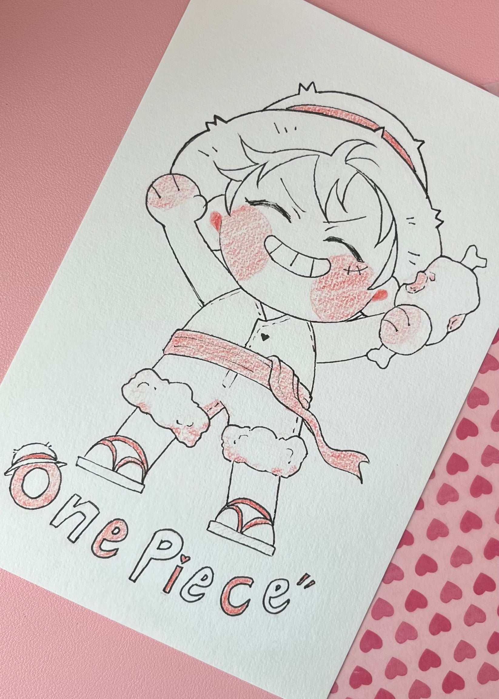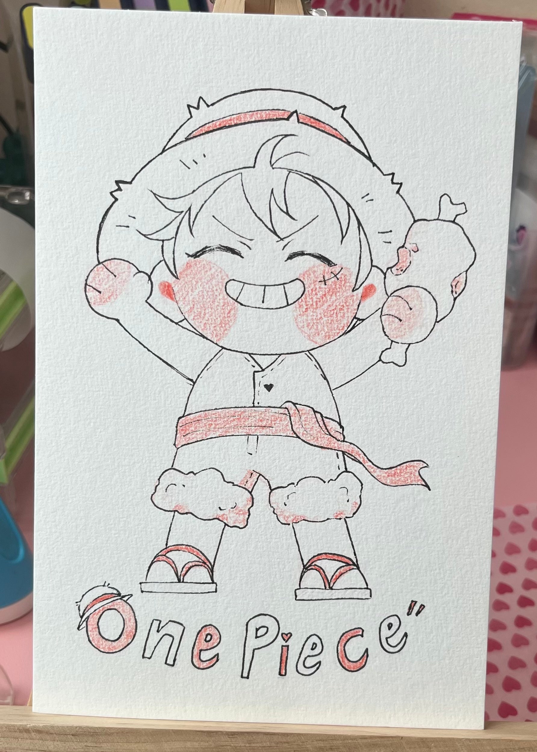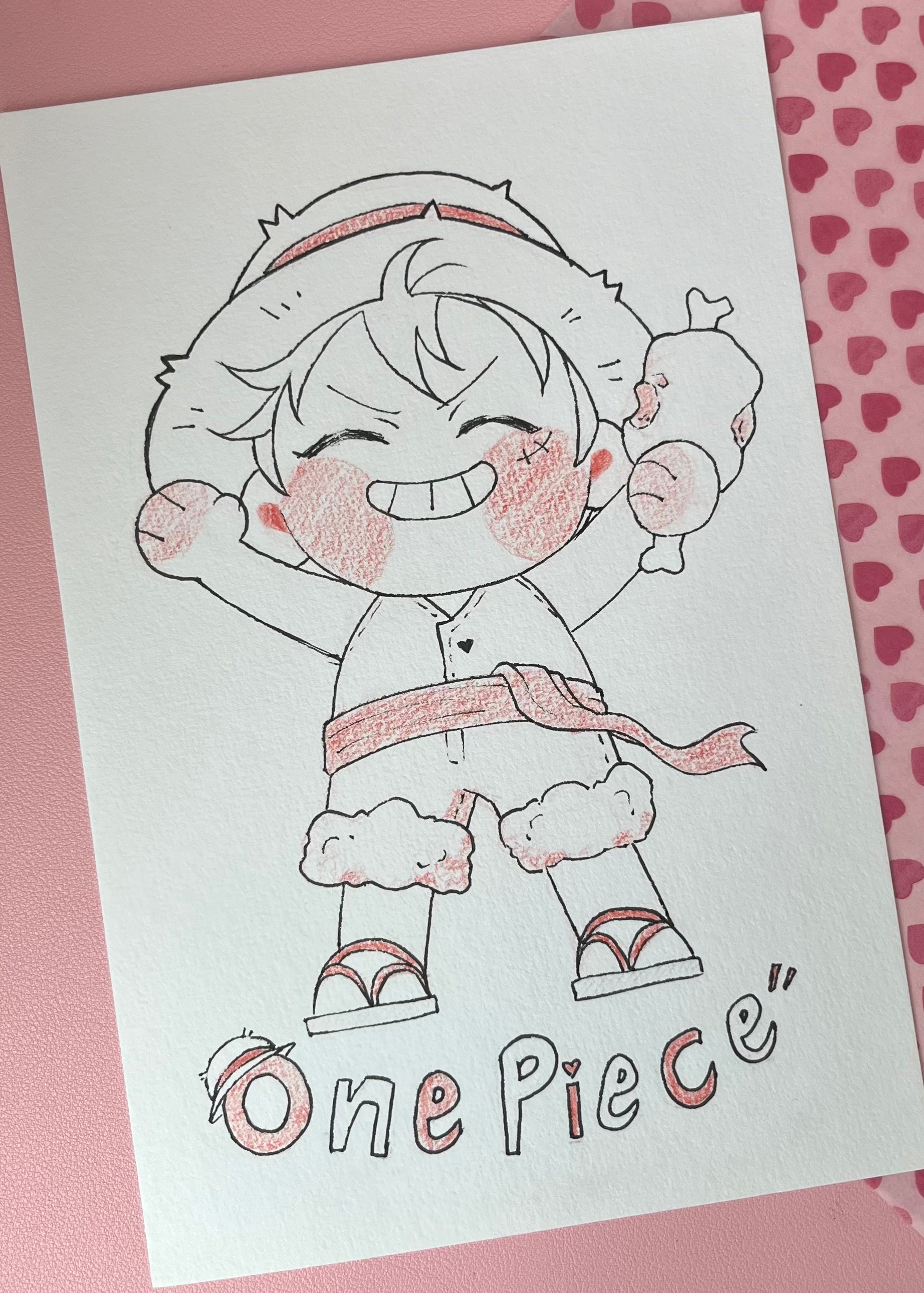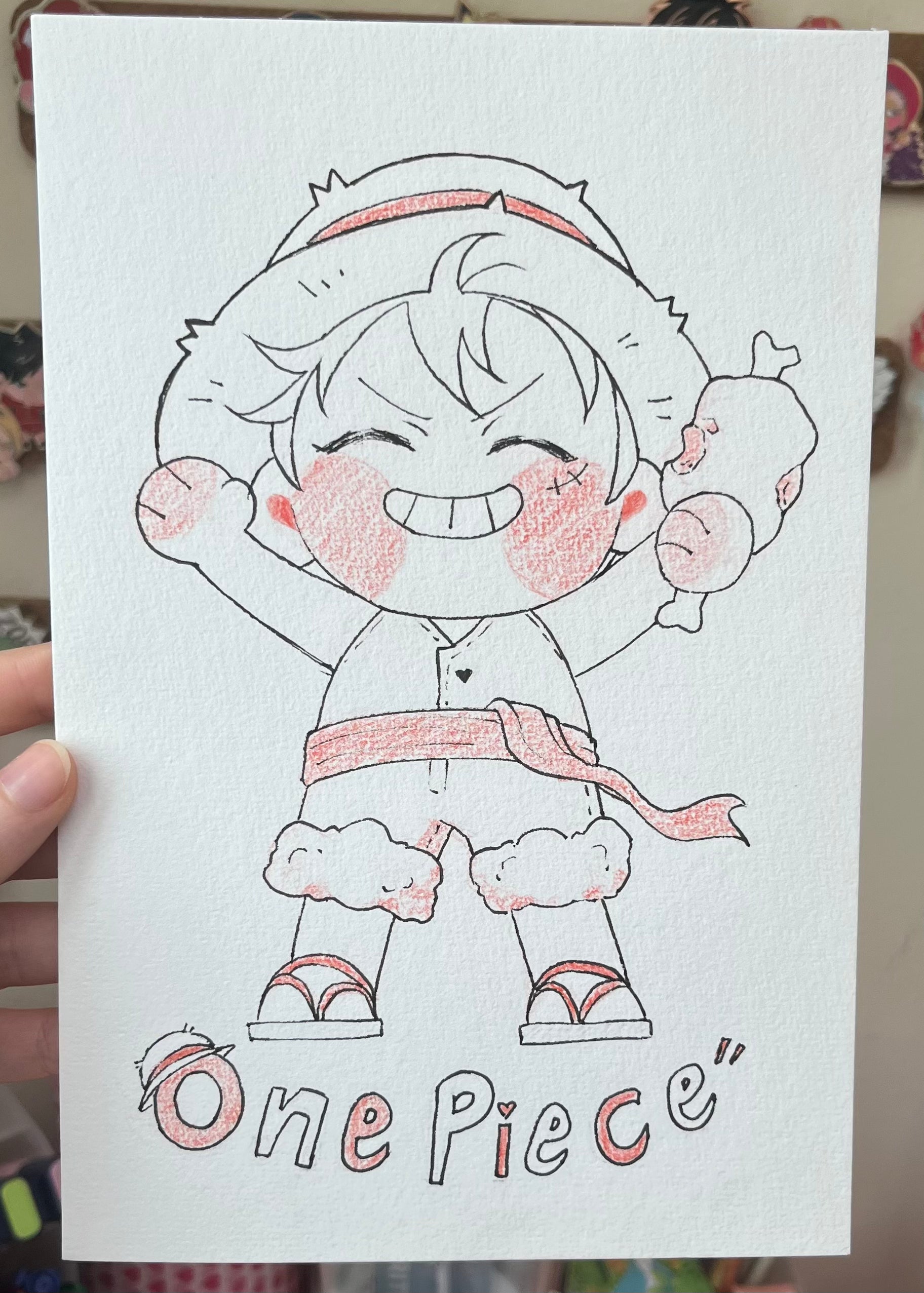 This listing is for a 6 x 9 inch original artwork by Hkdoodles (Hiba)!! Featuring chibi Luffy, it is an ink & colored pencil piece done on 100% cotton 300gsm paper and, If you're the first to snatch this, you will be the owner of a one of a kind piece!